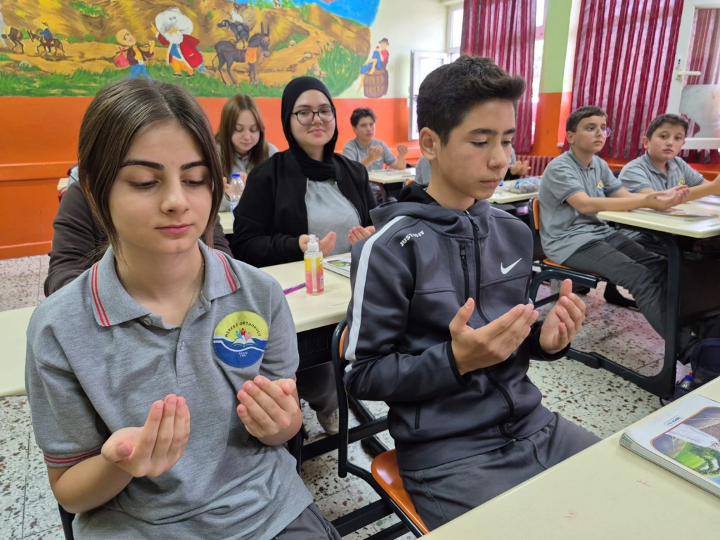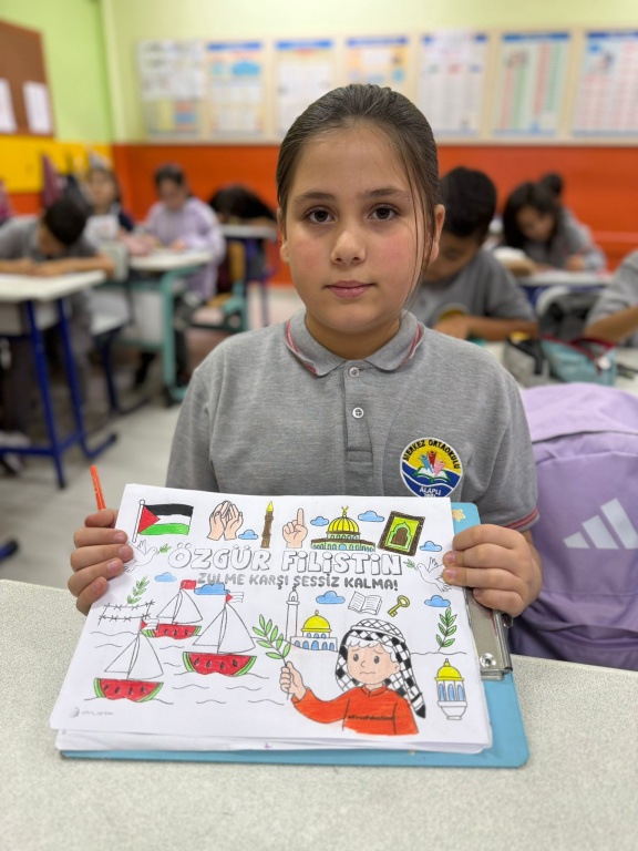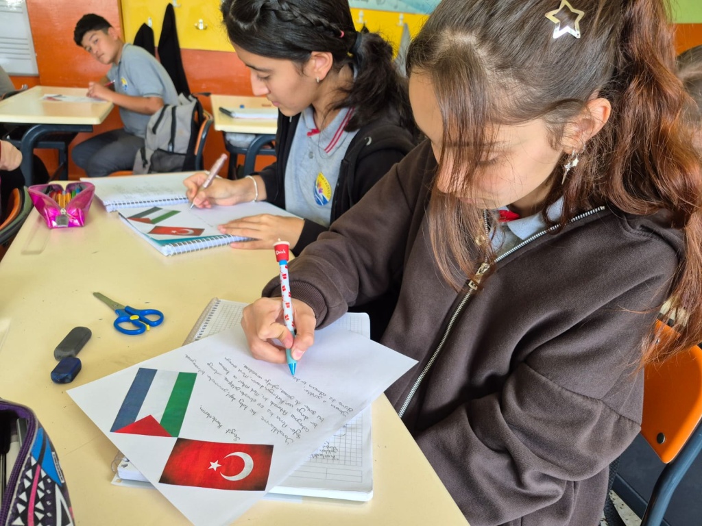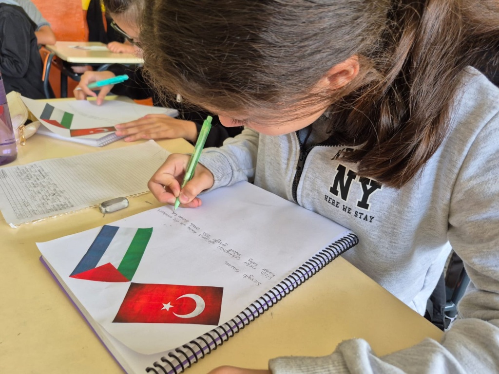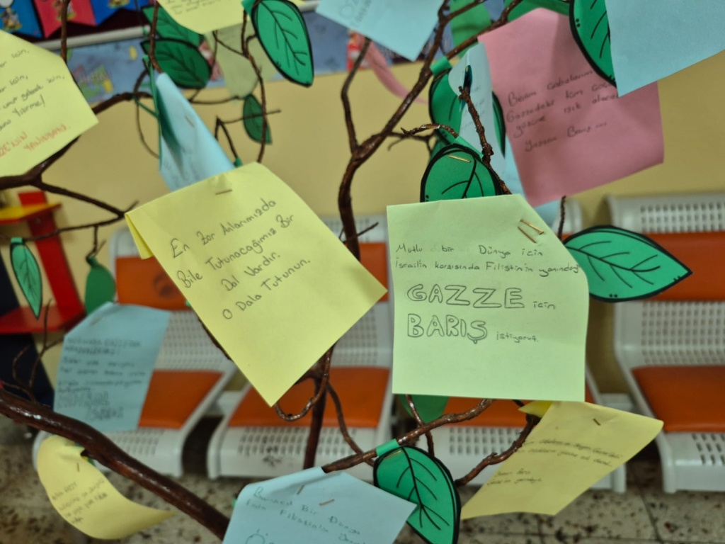 Gönüllerimizde daima “tarihte bugün” öneminde olan “Filistin” halkı ve yaşam başta olmak üzere her türlü haklarından mahrum edilen Gazzeli masum çocuklar için bugün okulumuzda öğrencilerimiz ve öğretmenlerimizle haykırdık: “Yurtta Barış, Dünyada Barış!”